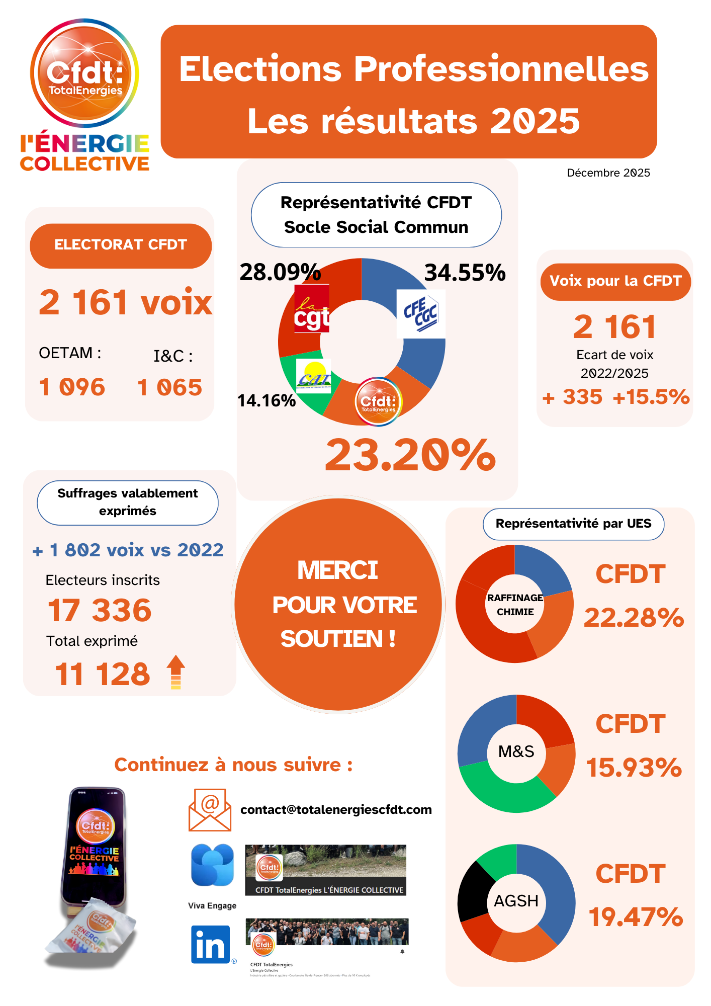Un immense merci aux 2 161 salariés qui ont fait confiance à la CFDT TotalEnergies !